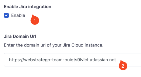 Enable Jira Integration: Check the enable box and enter your Jira domain.