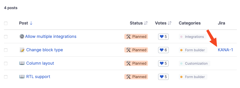 Once the Jira integration is enabled, you can link ProductLift posts to existing Jira issues or create new ones directly from ProductLift.